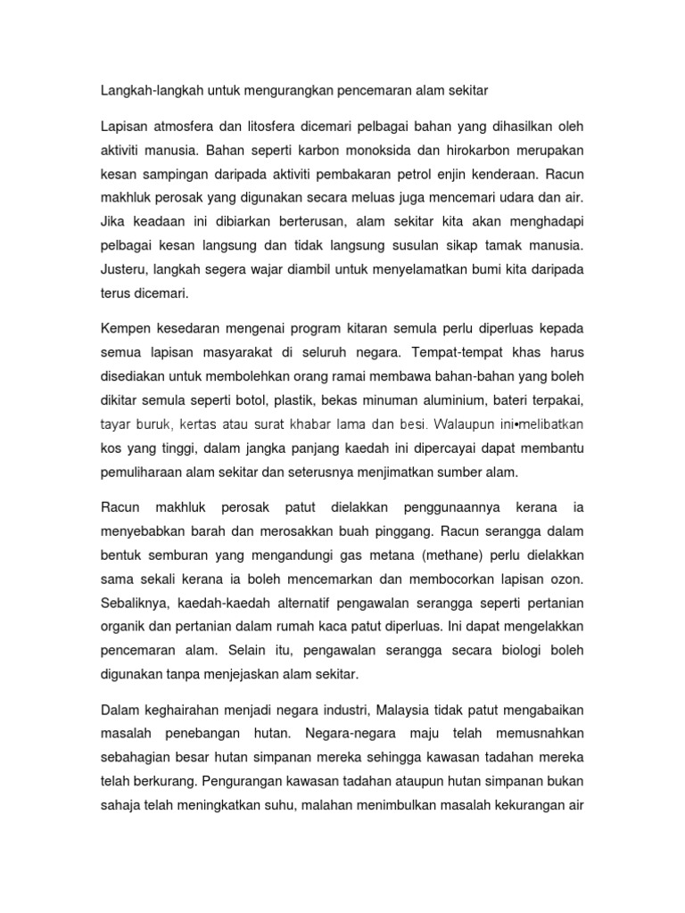 Karangan Langkah Mengatasi Pencemaran Alam Sekitar Spm Gallery Baru